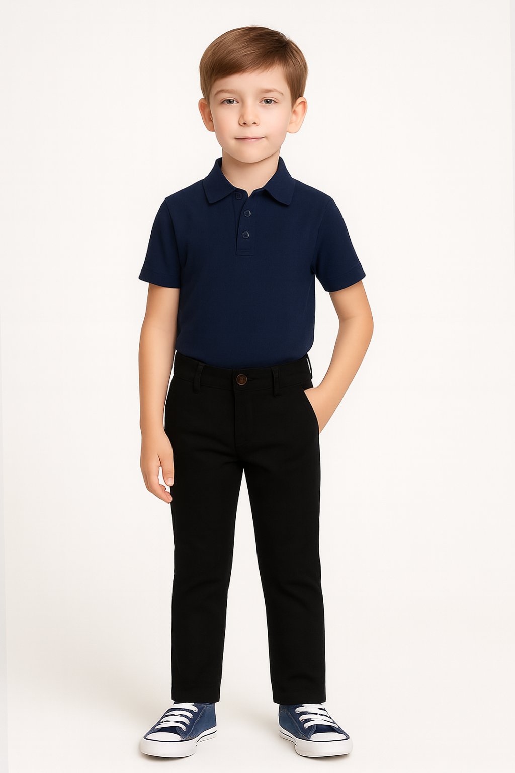 A customer is bound to be impressed by the contemporary standard design of the Boys Chino Slim Pants. It has 2 spacious slide slash pockets. The zipper is smooth and nicely aligned, along with a well-defined button enclosure. A pair of pants also has two back pockets, giving more options to the wearer to carry various things.